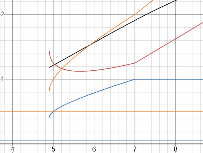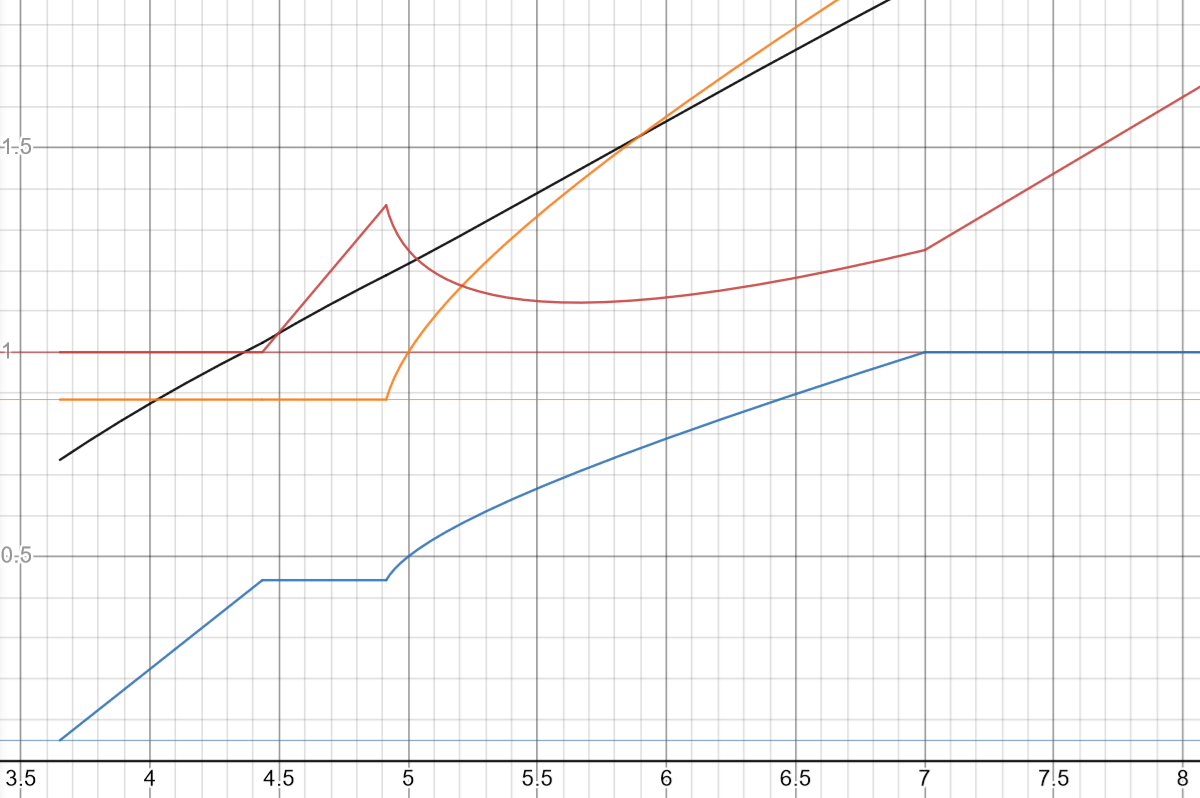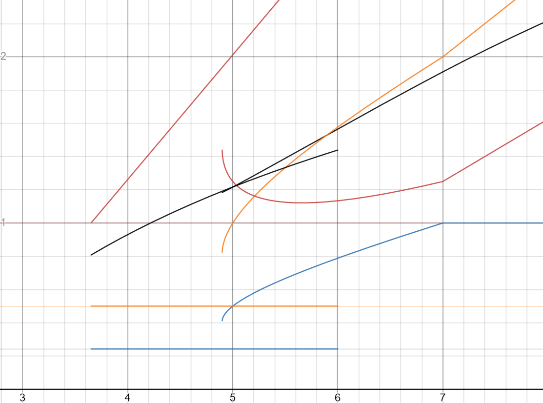 となります.グラフを見るに,もはやこの領域ではラグランジュの未定乗数法の最大候補が優勢ですのでこれを考える必要性はなさそうです.